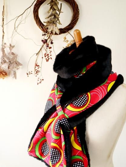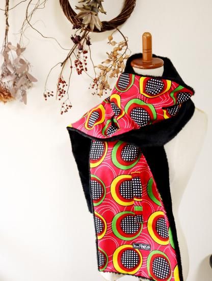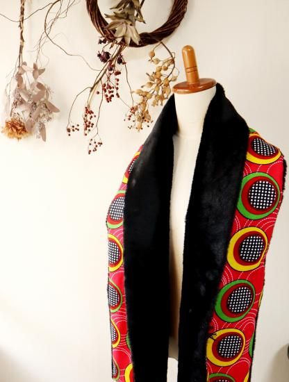 幅広 ロング マフラー ”アフリカ布&エコファー”